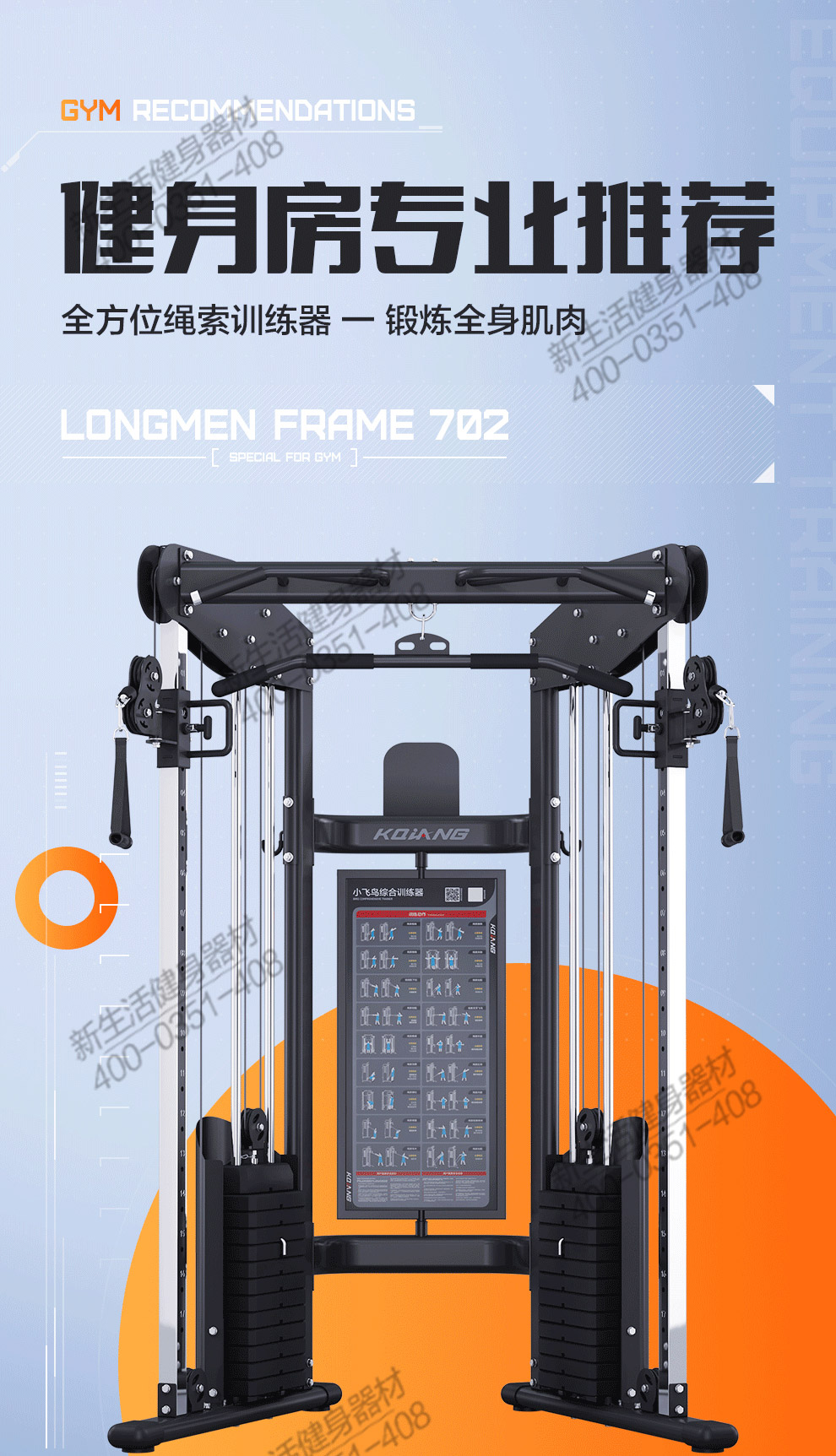 尊龙时凯小飞鸟702 综合训练器械多功能力量健身房器材深蹲架家用商用小飞鸟龙门架